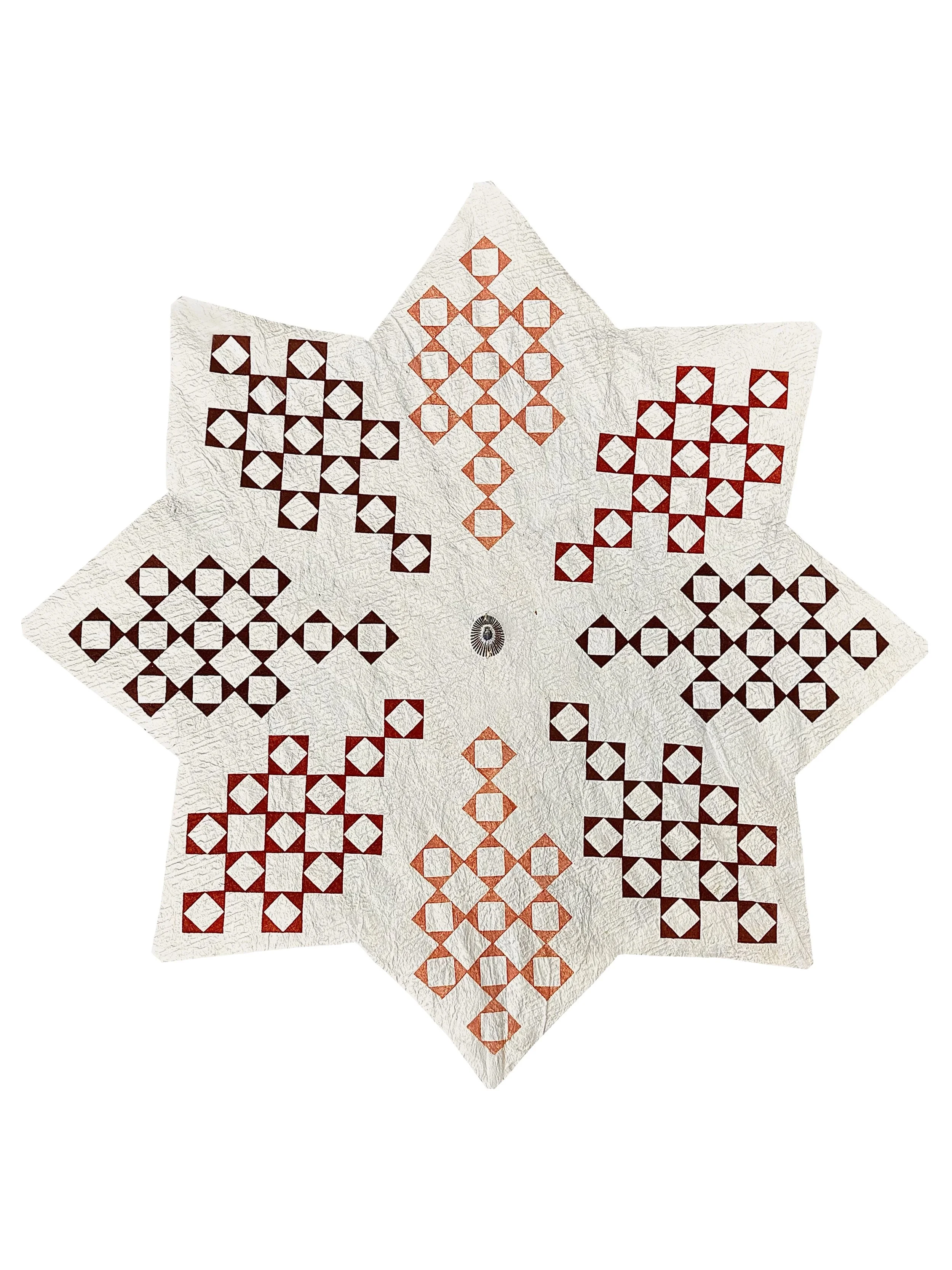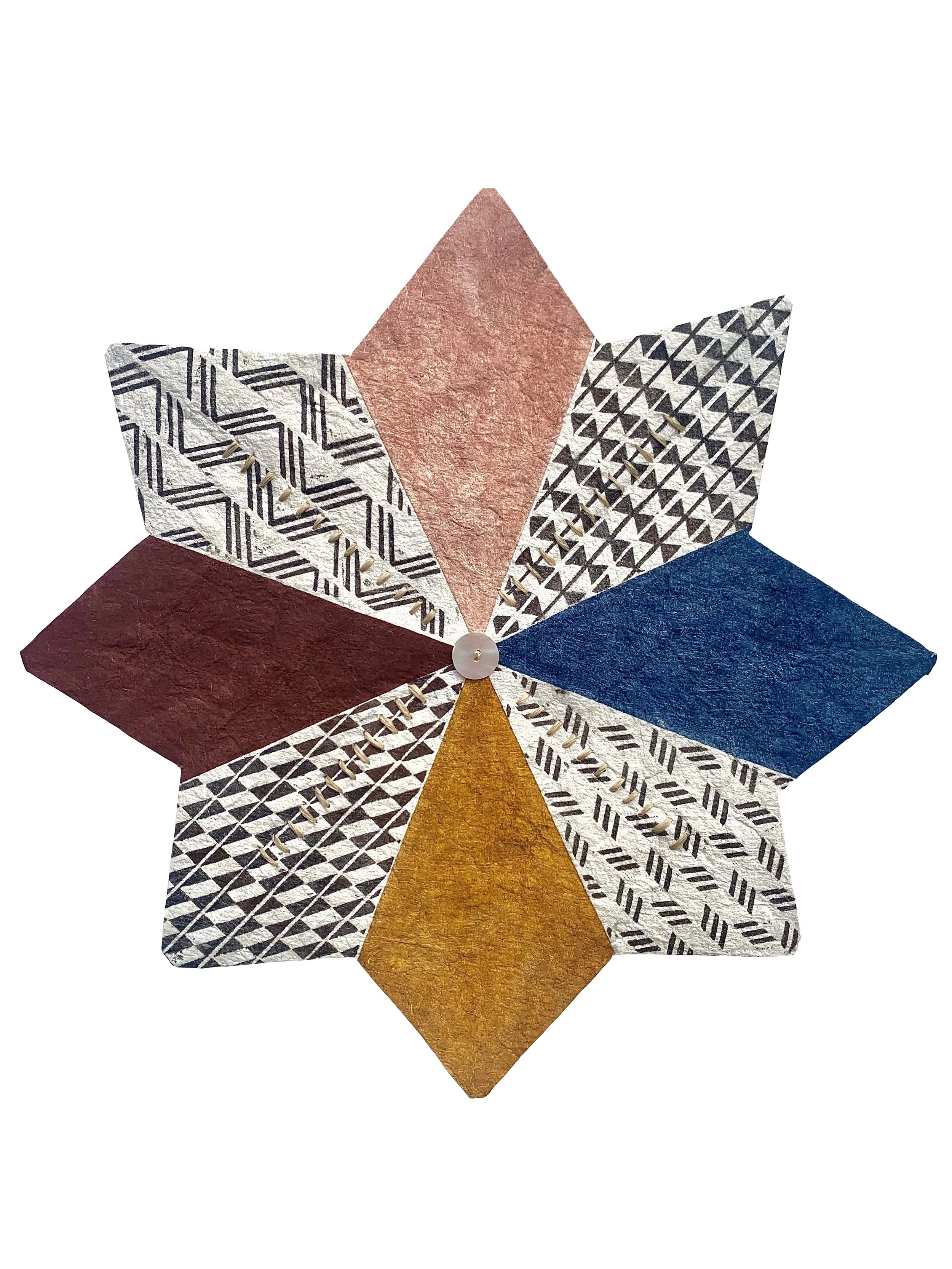 Lupe Hōkū (Star Kite). Earth pigments, hibiscus cordage, bamboo, shell, kapa (barkcloth). 16.5 inches H X 16.5 inches W.